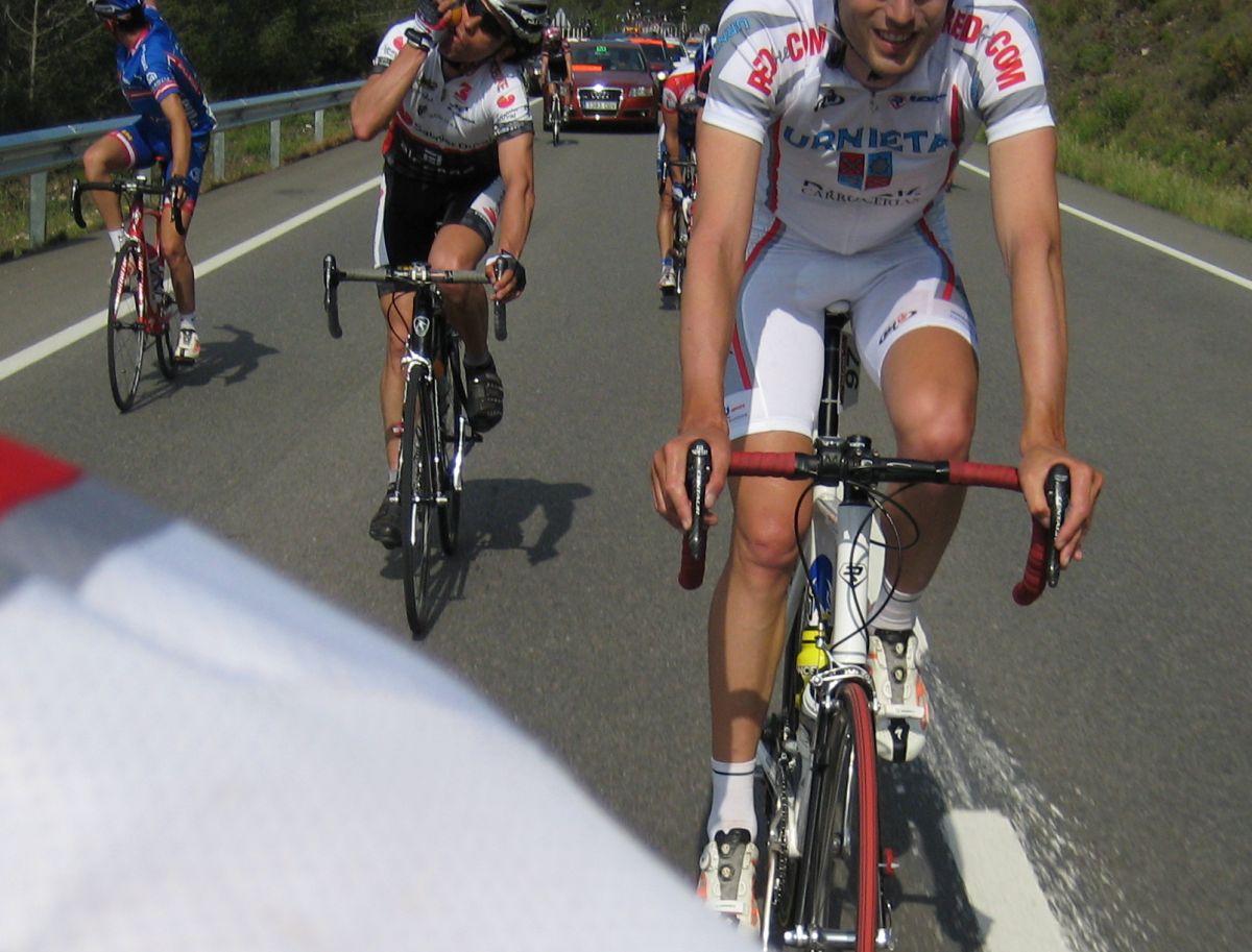 Iba de los 5 primeros pero no iba bien, tenía un dolor de patas de la crono de la mañana. y eso que no la había hecho a tope.. el equipo de Escobar iba tirando pero solo con 2 hombres, el mítico Sergi Sedov, que iba cedido del politécnica, y Escobar, que iba cedido de Azpiru, el propio lider, tiraban pues, los dos cedidos del Massi PaintCar, sus compañeros habían reventado ya.