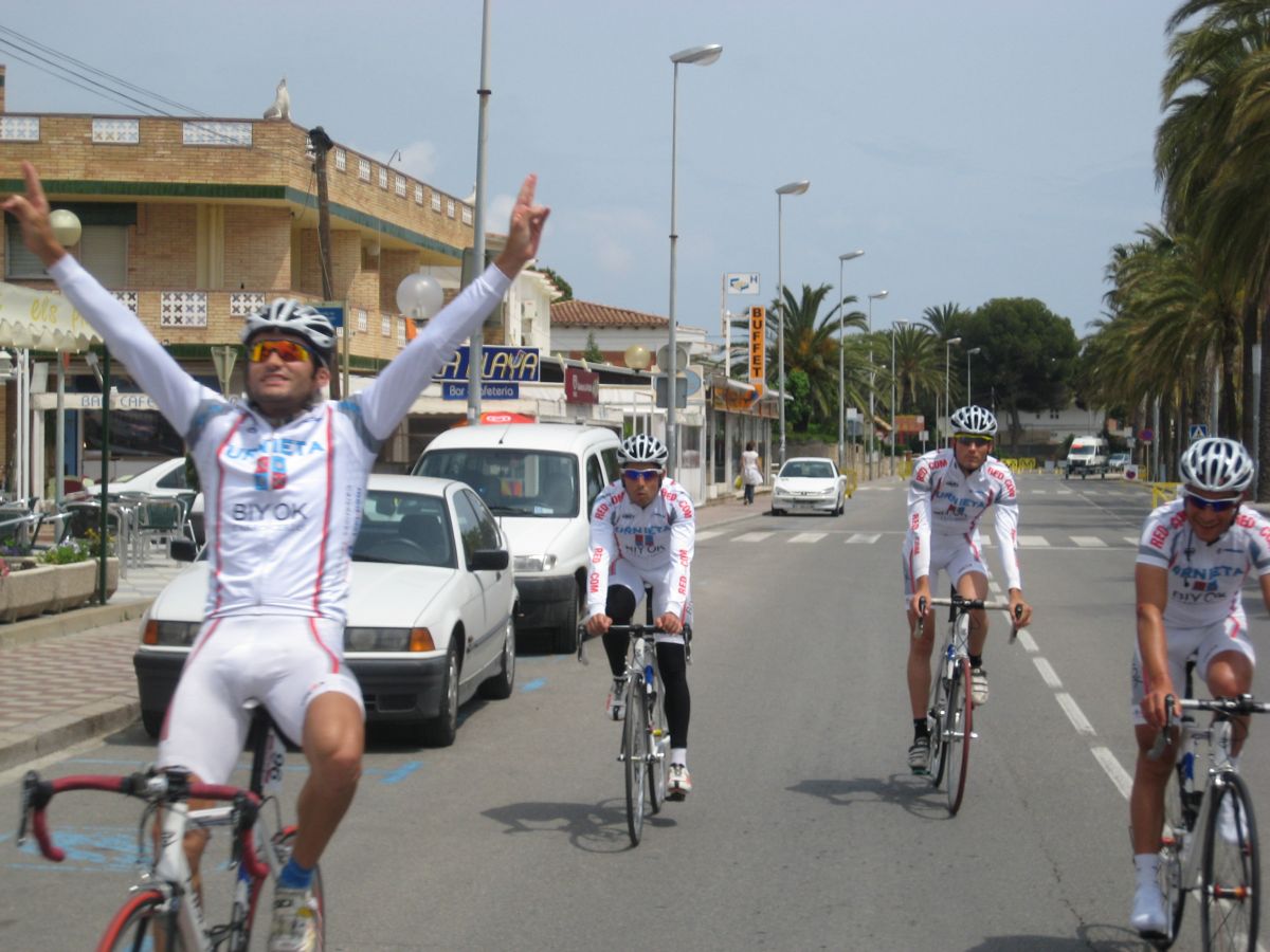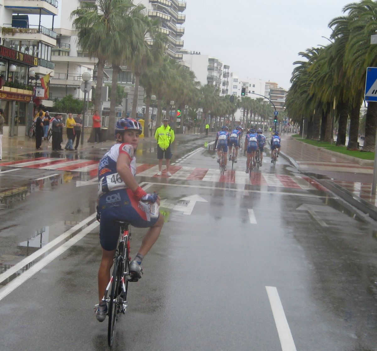 Toco tirar del pelotón, nos pusimos a tirar los 3 Urnietas que ibamos, nos ayudaron los Cajasur que también llevaban 3 y luego los franceses, tirabamos pero a tope, a bloque, a todo lo que dabamos, a 5 de meta cogimos un grupo grande, ya solo quedaban 7 por delante, llegamos al sprint en Salou, con muchisima lluvía, yo esta vez si que no hice ni por meterme, habíamos salvado la etapa, pero pasando muchisima miseria, persiguiendo en las bajadas, tirando del carro a bloque al final, y con toda la lluvía encima, eso iba a pasar factura.