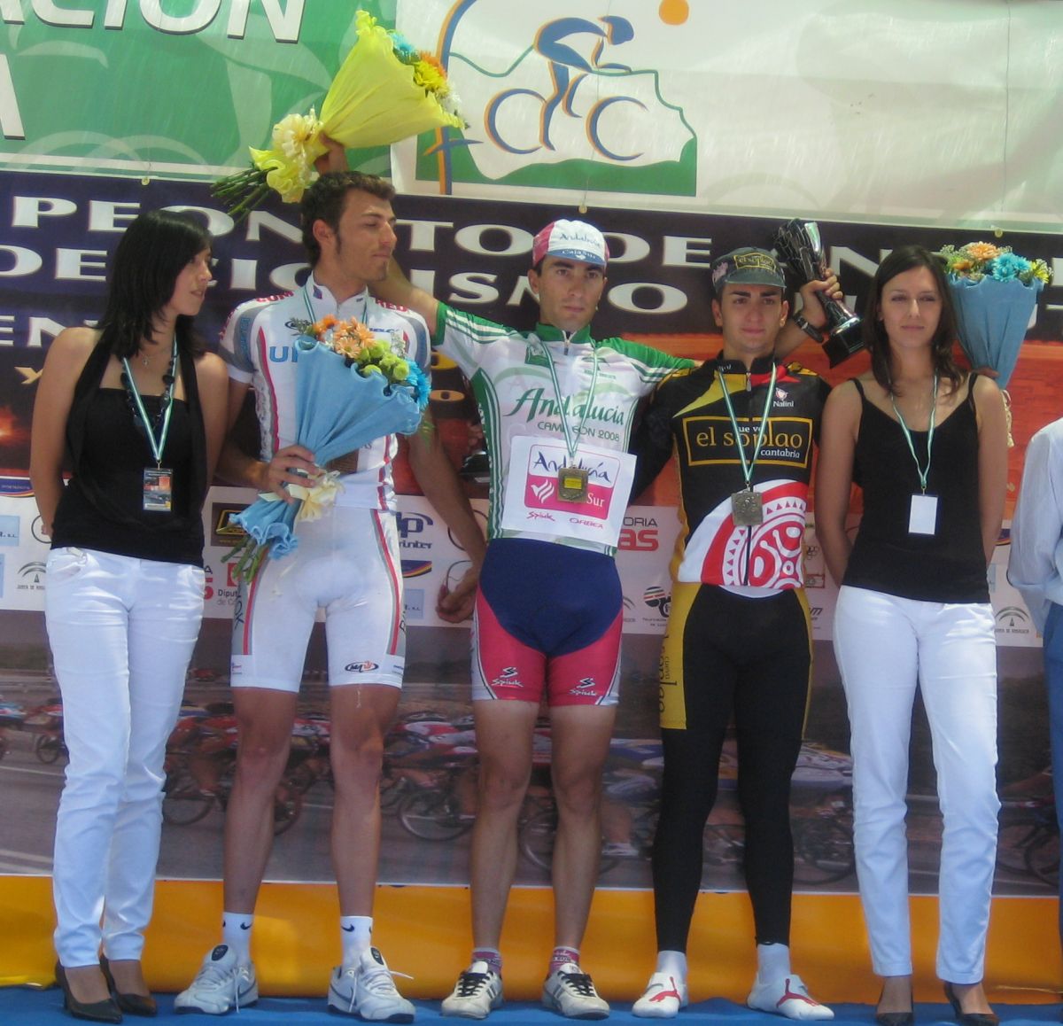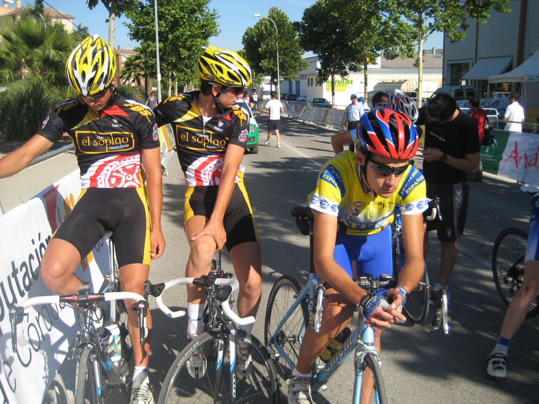 También iban 3 Cajasur en ese grupo, arrancó uno, salté rápido por el y rápido llegaron los Soplaos cogiendonos, llegamos a un repecho muy duro, el último antes del cruce, alli arrancó el propio Lobato muy fuerte, tanto que reventó a su compañero, yo iba con bastantes fuerzas y le seguí fácil, pero su ataque fue tan fuerte que cogió al Cito y a Abraham, que no habían conseguido irse del todo.