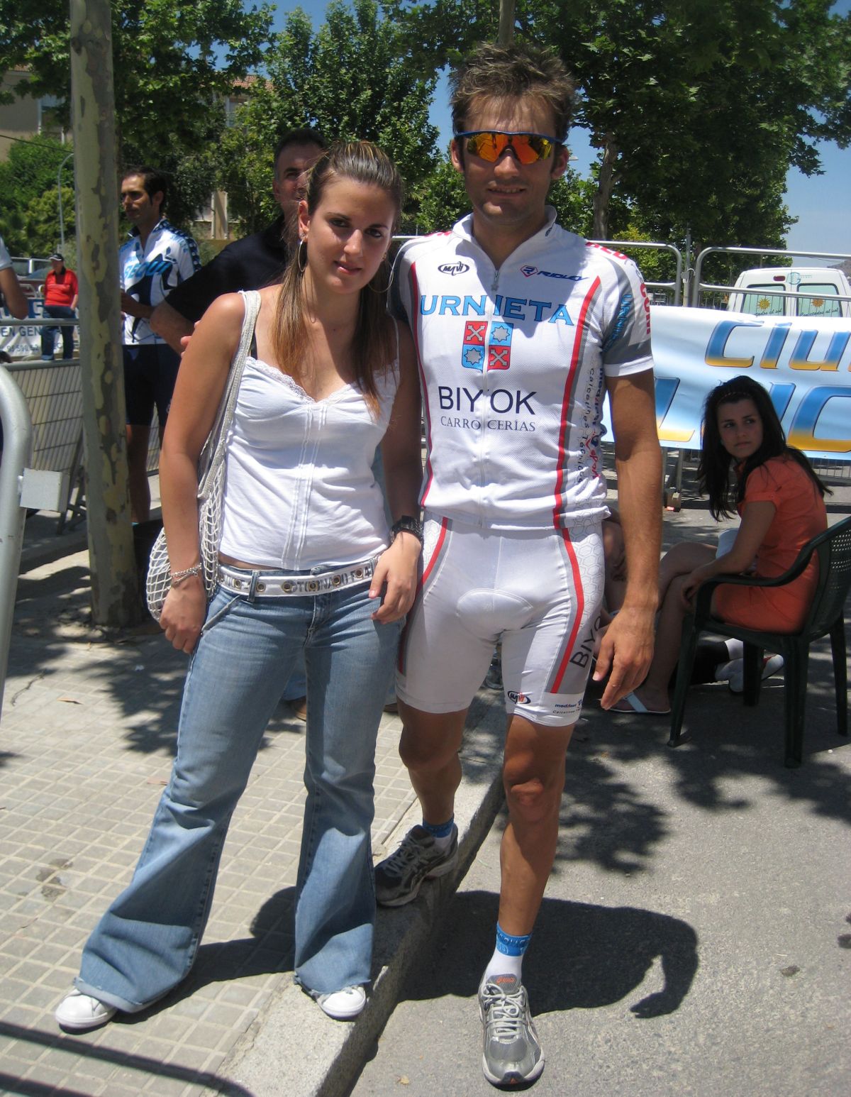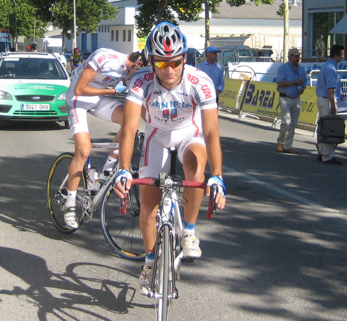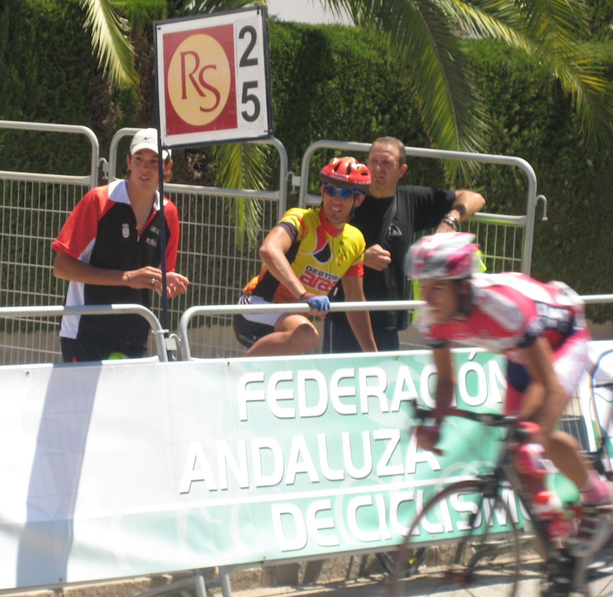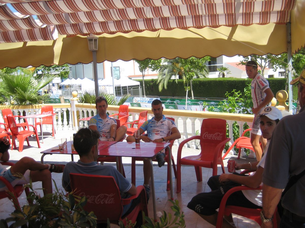 Después del palizón de la línea, correr esto el mismo dia por la tarde era una locura, pero el consuelo era que todos habíamos corrido la línea, todos ibamos a ir muy perjudicados por la tarde, yo ademas, no tenía bici de Crono, la mía me la iba a dejar el Sargento, pero salía bastante tarde y andaba yo con la incertidumbre de si le iba a dar tiempo a terminar antes de que dieran mi salida. Luego tampoco podía calentar, por que el equipo se llevo todas las bicis, yo estaba sin bici, sin calentar, con las zapatillas y el casco puesto, dando vueltas por la meta, esperando la llegada del Sargento.