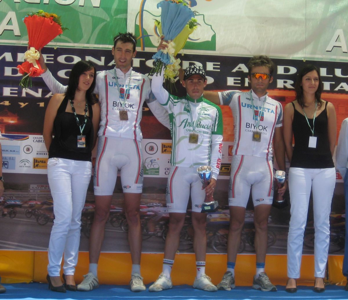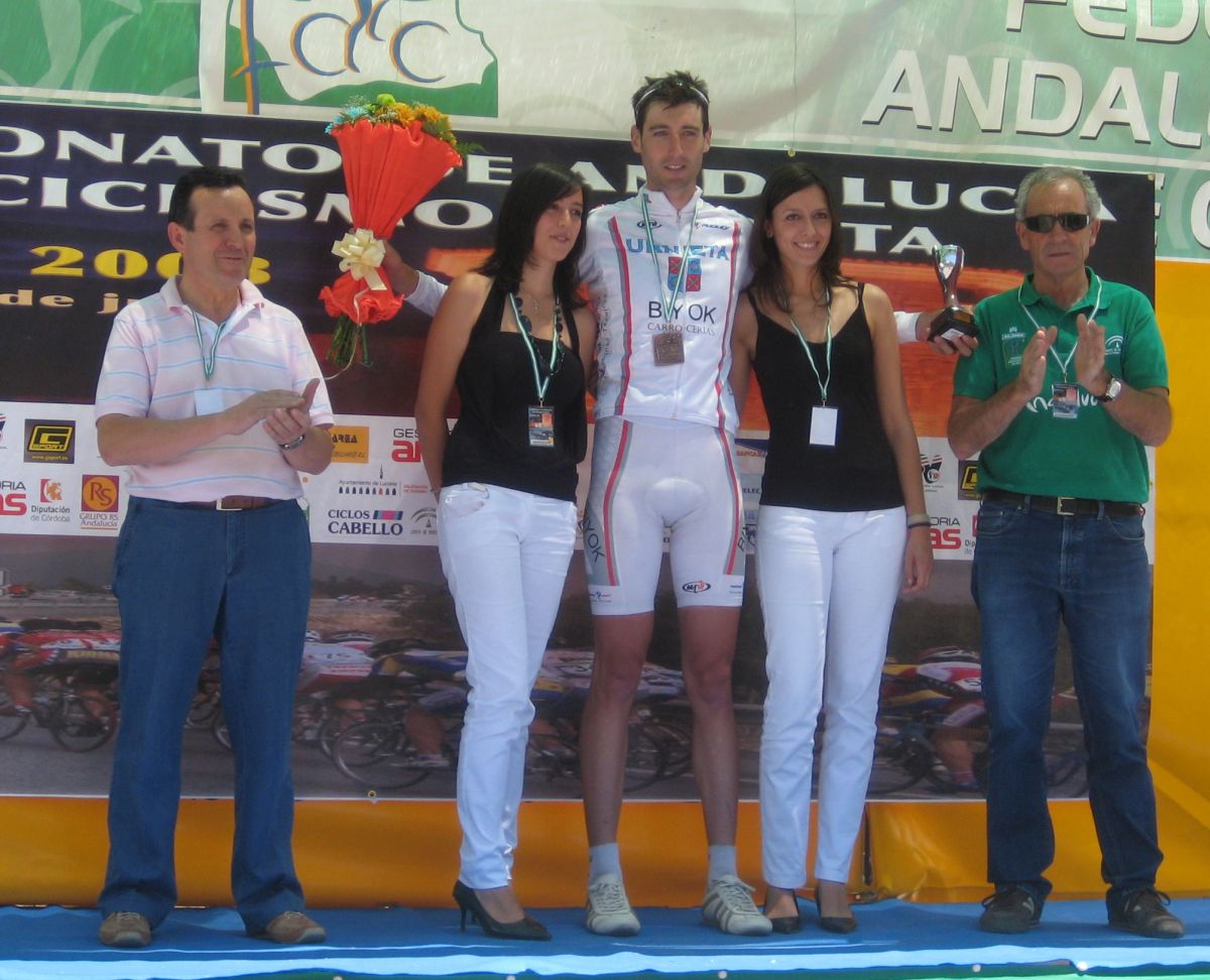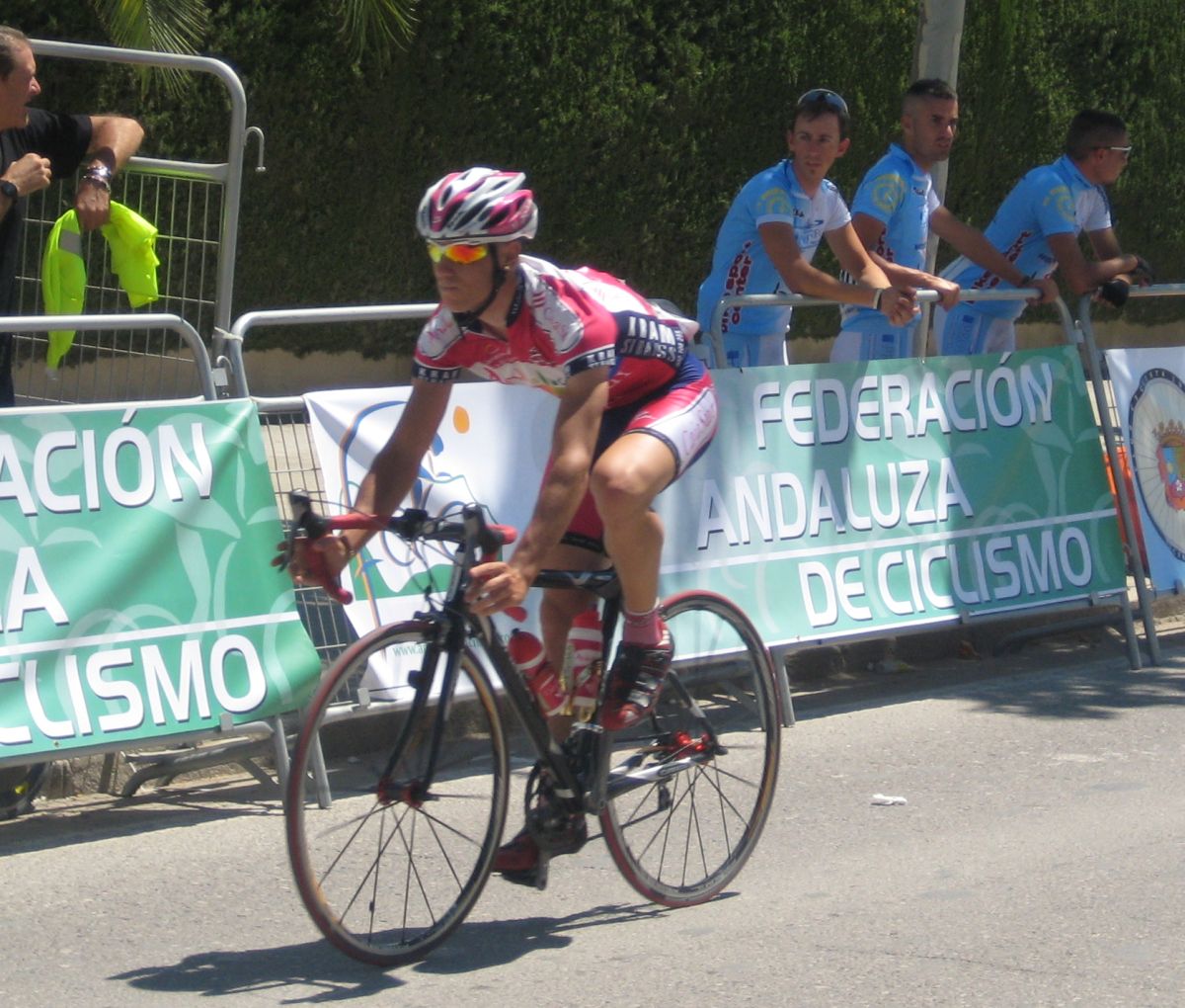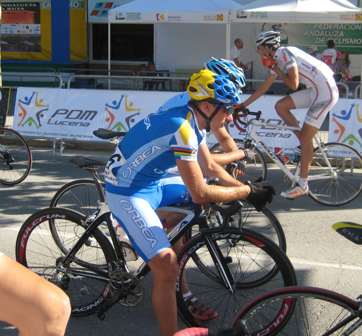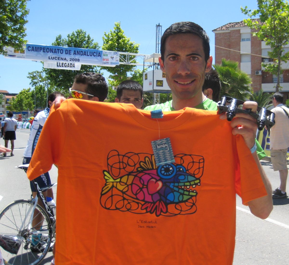 Ultima recta antes de la llegada a Lucena, sabía que iba a cogerles, pero Ignacio me dijo, regula un poco antes de pillarles y les atacas cuando llegues, eso hize, levanté un poco el pie y cuando los pillé arranqué y me fui solo otra vez por delante. Montenegro tuvo que ponerse a tirar a bloque a por mi, fue una persecución Montenegro-Diegoweb, con Saul a rueda de Montenegro, estuvo muy ajustada la cosa, pero apreté con cojones y pude llegar a Meta, entrando tercero de la carrera, segundo Elite, Saul pudo aprovecharse del trabajo de Montenegro para ganarle el sprint, salió bien la jugada, quizas si me quedo a rueda nos gana Montenegro el sprint a los dos, ya sabemos que el Tucho es esprinter.