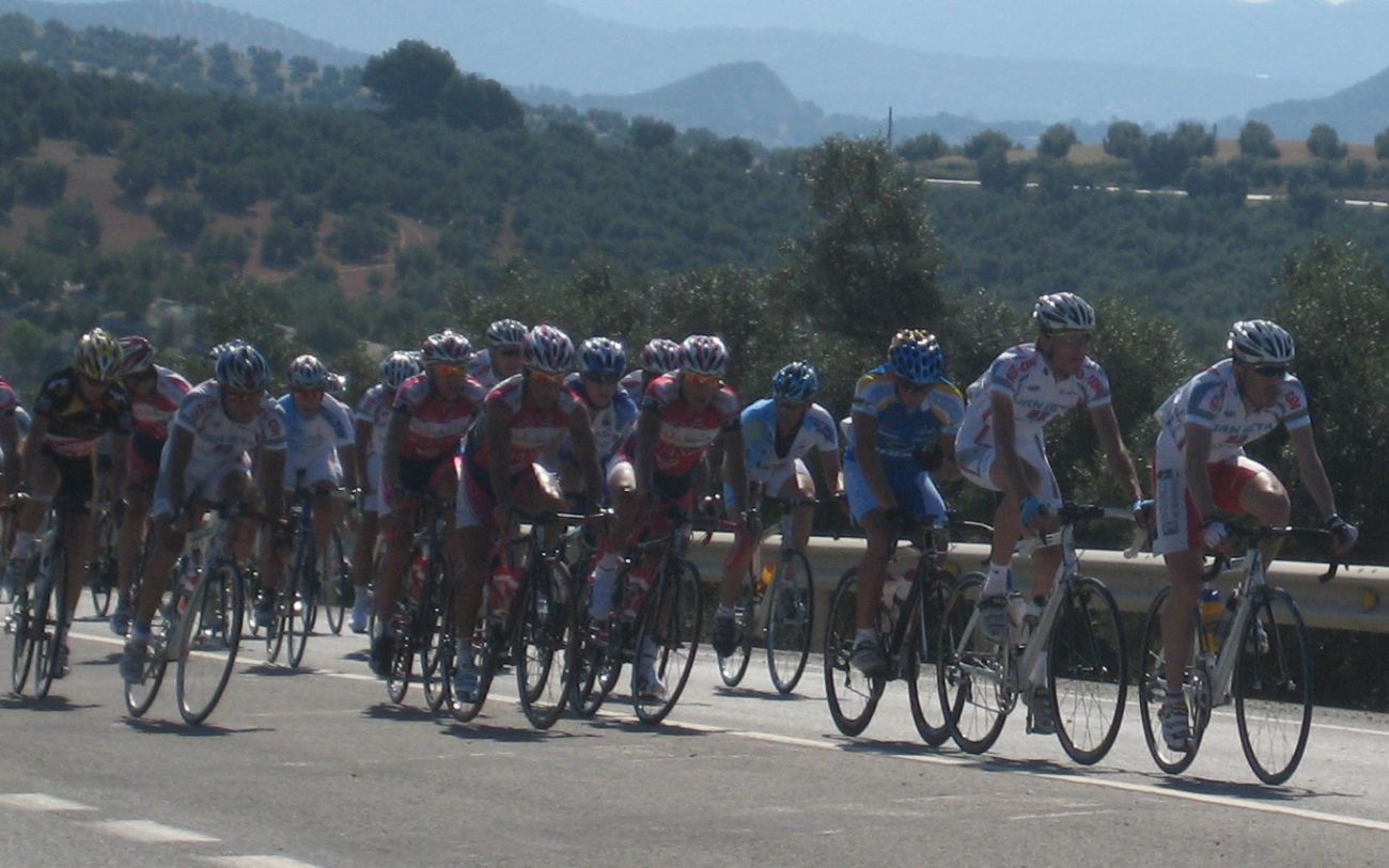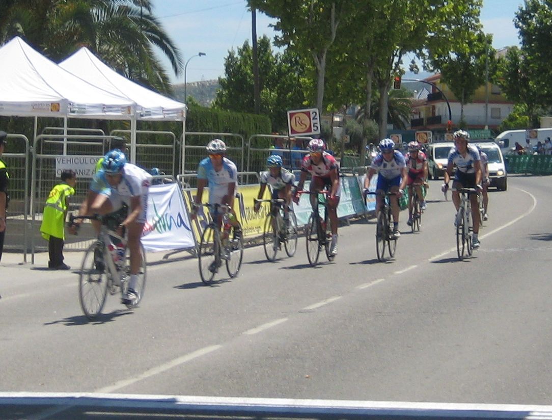 Con esta situación entró todo el mundo por detrás, entró el peligrosisimo Ruzafa, que lo hizo arrancando con fuerza, aunque salimos todos rápidamente a por el bien atentos, ya entramos a una carretera mas amplia y vi como había entrado.. hasta gente que se había quedado antes de Rute!! Situación pues, bastante deprimente para mi, era como volver a empezar la carrera, con mil balas gastadas, aunque la ventaja de las bulerias, es que aqui los que enganchan no han ido a rueda de un equipo comodamente, todos llevan su cruz encima.