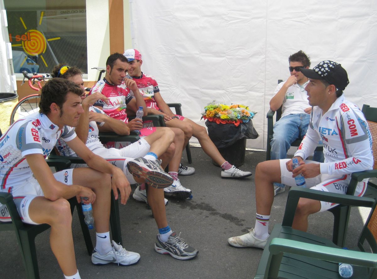 Juan Carlos Rienda eligió un momento decisivo, arrancó fortisimo sorprendiendo cuando nadie se lo esperaba, visto el poco entendimiento que había ya en la fuga había elegido buen momento para irse solo, Francés reaccionó rápidamente y saltó a por el, cogiendole. Nosotros, los Urnietas, nos quedamos expectantes, los Cajasur también, a que tiraran los que no habían metido a nadie.