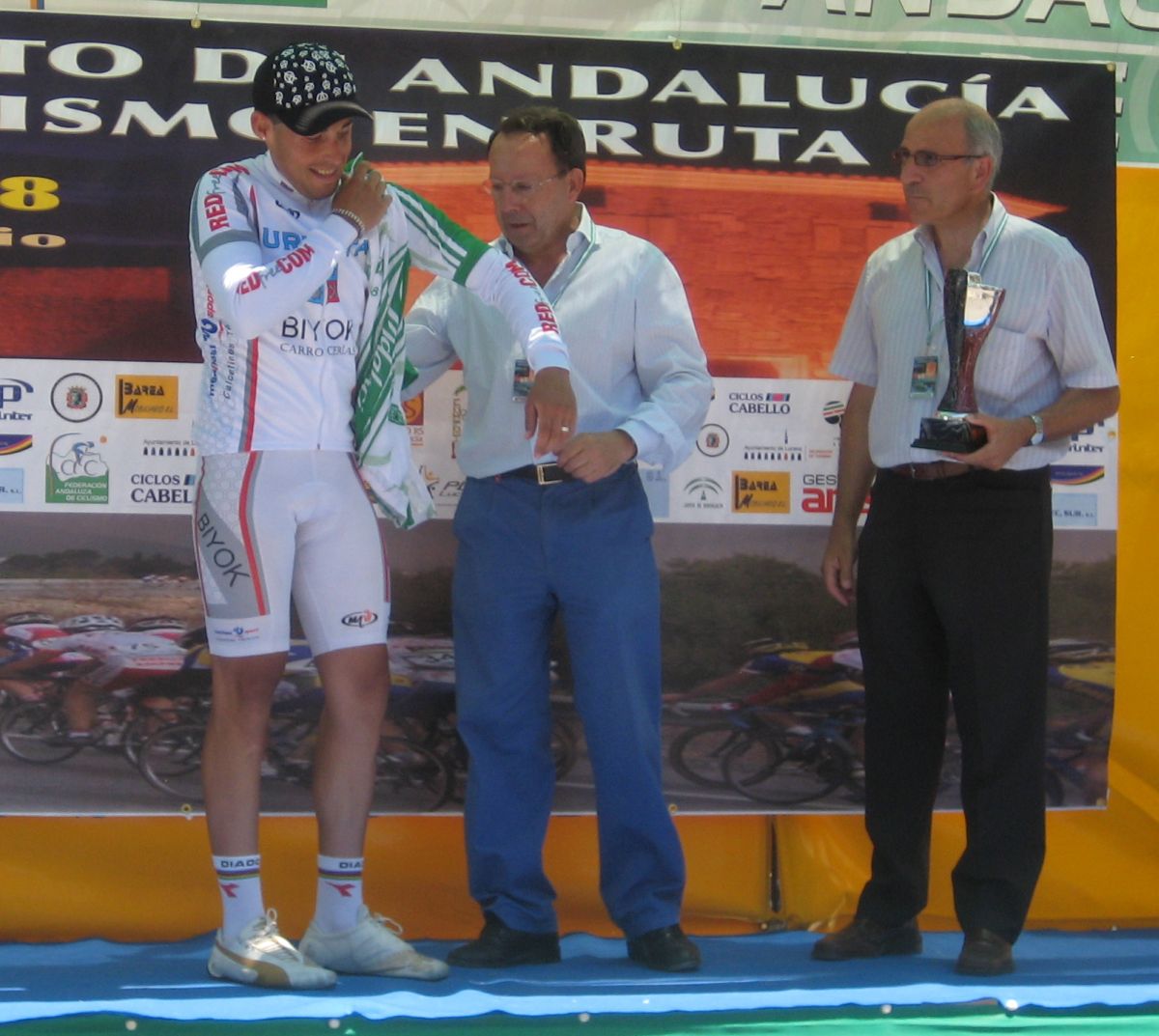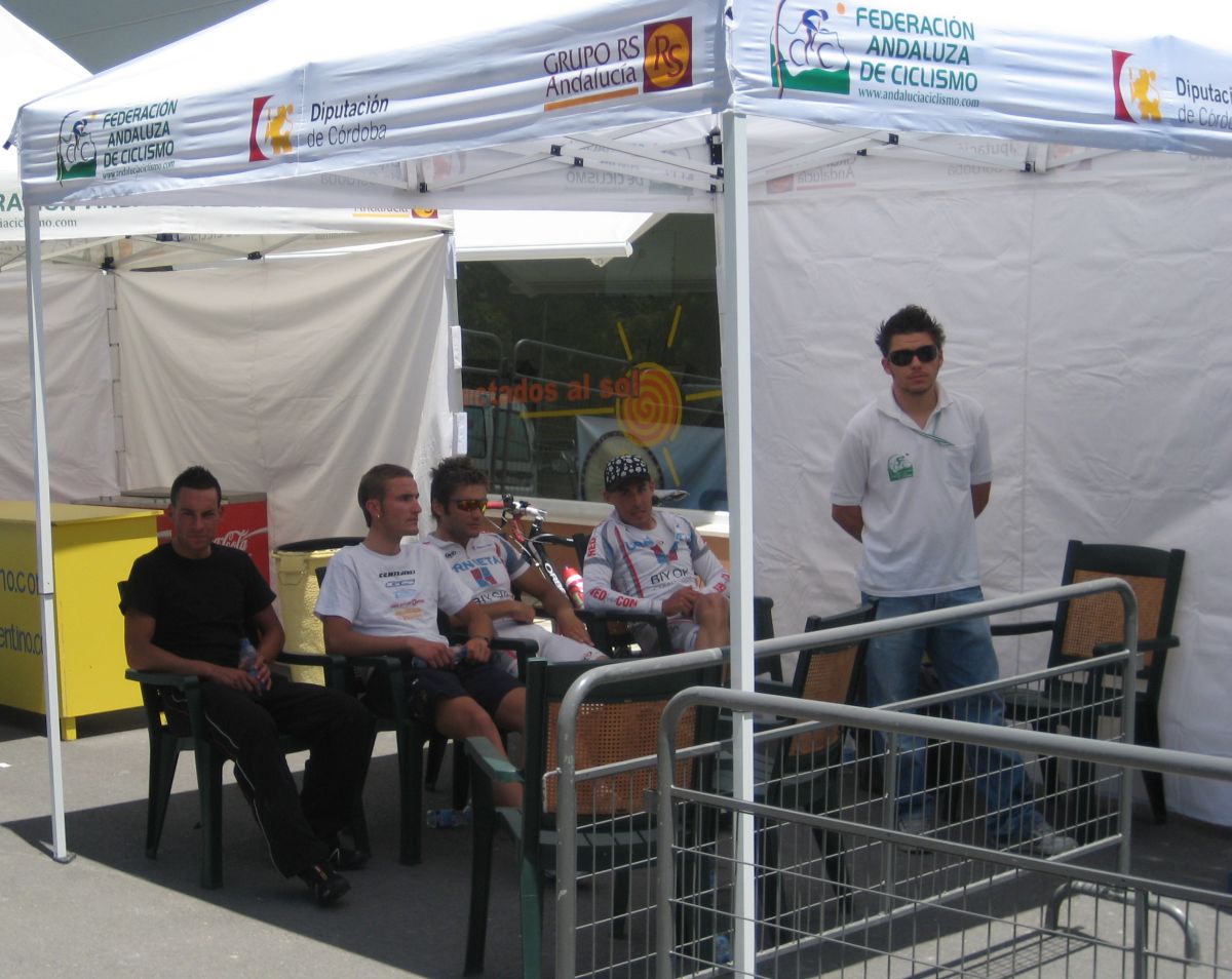Ibamos 3 Cajasur, 3 Urnietas, un Soplao y Merino del Saunier, el terreno era muy complicado, repechos y muchas bajadas con curvas cerradas, camino de Carcabuey, en una de ellas iba tirando Montenegro con Merino detrás, se cerró la curva, Montenegro libró a lo argentino a última hora pero Merino salió rodando por el barranquillo.