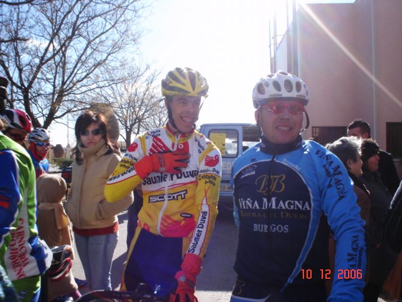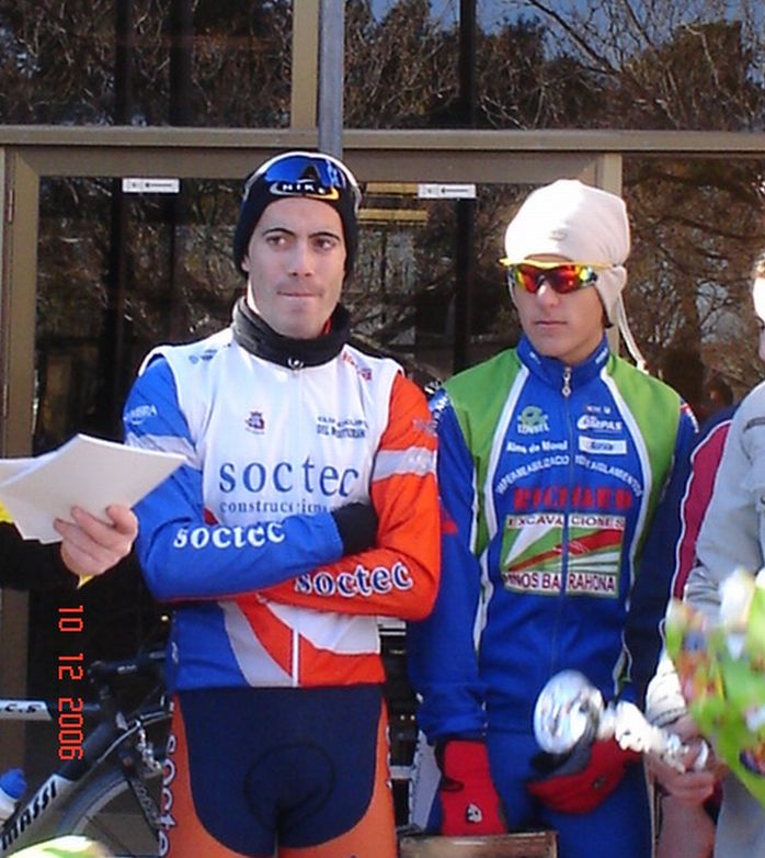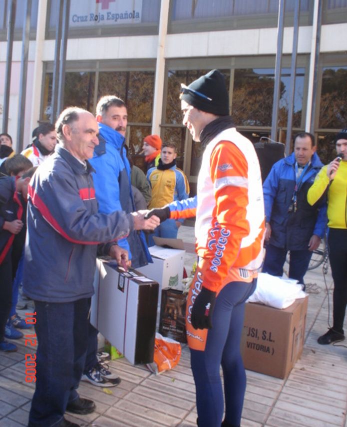 Manu arrecido de frio con Sergio Pradas, de Moral, que hizo tercero y Jose Luis Carretero, del Rualje de Tomelloso, cuarto.