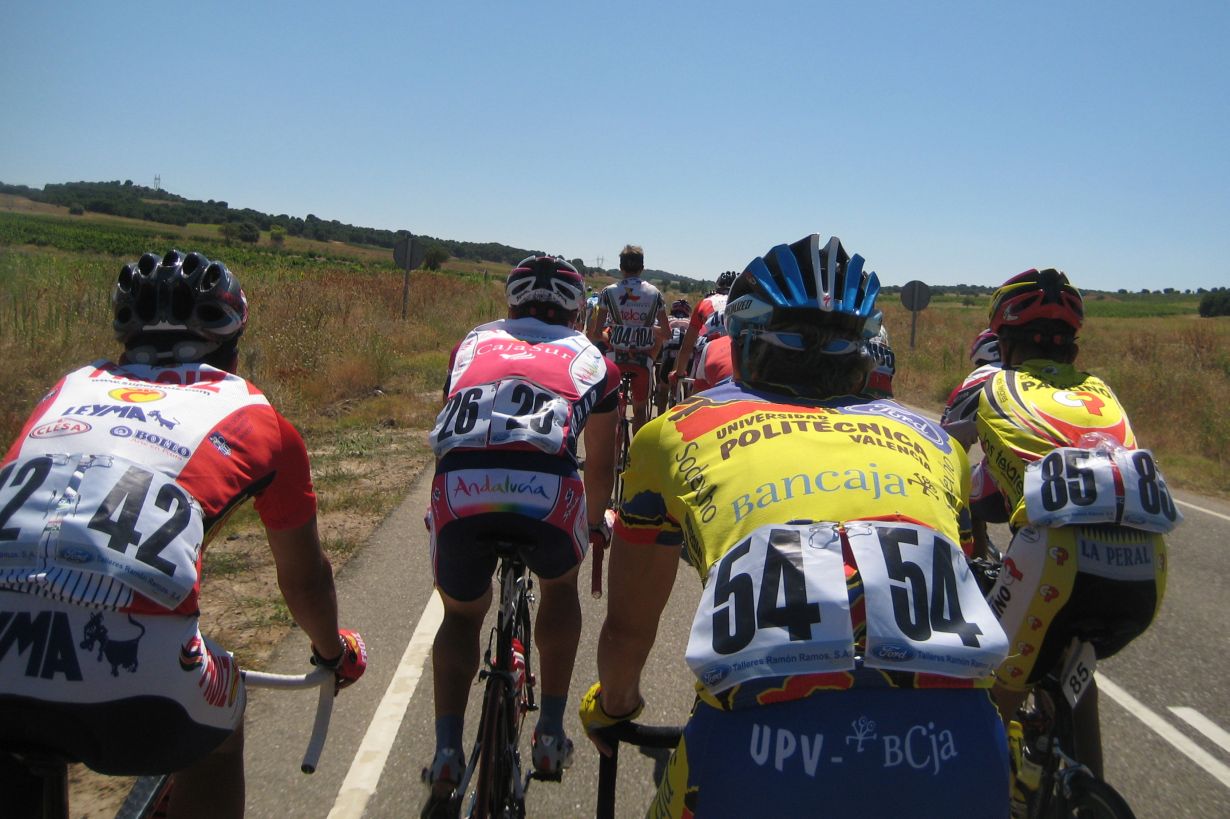 La subida de Miranda de Douro se me hizo blandita, subir a Portugal por Bemposta es mucho mas duro. En un repecho de Portugal atacó Victor de Froiz, salté por el con Asier de Telco y los tres conseguimos montar una fuga decente, cogimos 3 minutos de ventaja, yo me cebé demasiado tirando, en ese terreno me encontraba muy bien pero fui demasiado generoso, por lo menos pasé primero por el Sprint de Bemposta, pero cuando salimos de Portugal y empezamos a subir Fermoselle pagué tanto relevo y cedí, a 200 metros de coronar me cogió un grupillo que se había formado después del pinchazo del lider, Belda.