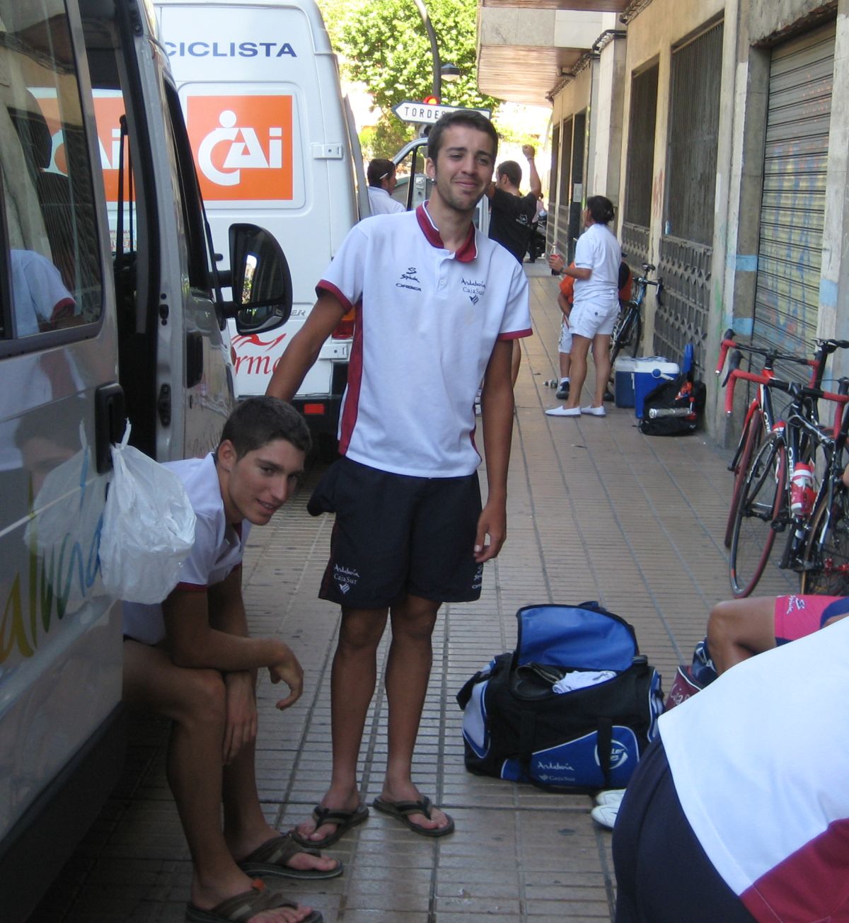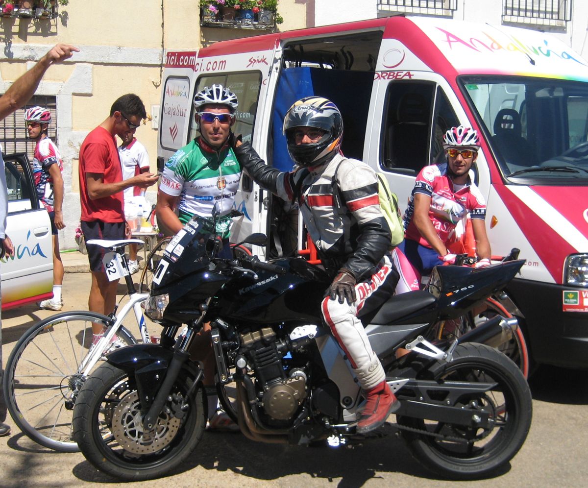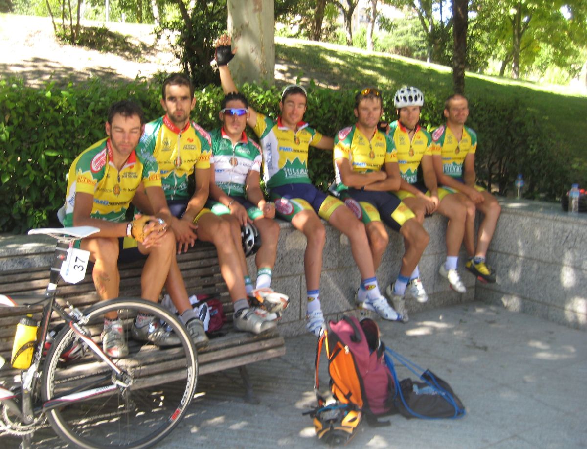 Luego la situación era estrategica para intentar ganar la vuelta con Segovia, el lider quedado. En el grupo ibamos Mantecón y yo para tirar de Segovia, en esos momentos se sacan fuerzas aunque no haya, asi que me puse a tirar entrando en Fermoselle, pero en el repecho del pueblo rasssss, rompí la cadena y me dió tanta rabia y tan tenso iba que me tiré a la acera a descansar, hasta que me dieron una bici de repuesto, pero yo ya no tenía nada que hacer, me paré tropecientas veces a ponerla a medida para terminar comodo la etapa. Tenía que haberme parado a esperar a la ultima grupeta pero llegue solo con otros 3.